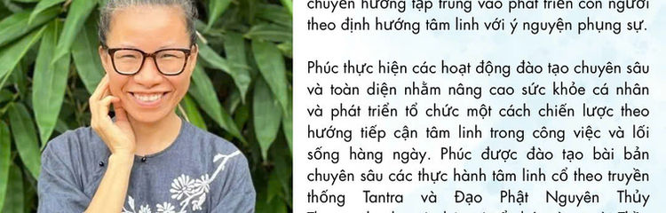 4. Giảng viên và người trị liệu Mangala Phúc Lê Thanh được đào tạo chuyên sâu trực tiếp từ Swami Niranjanananda Saraswati trong suốt 14 năm về làm việc với hành trình phát triển con người và phát triển tổ chức. Thông tin thêm về giảng viên tại đây